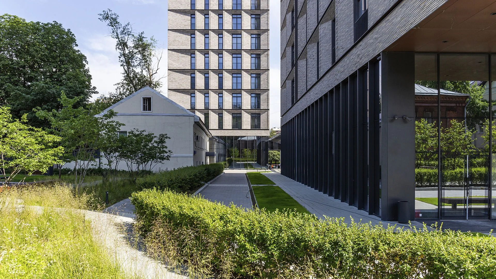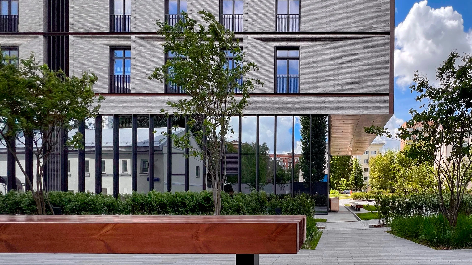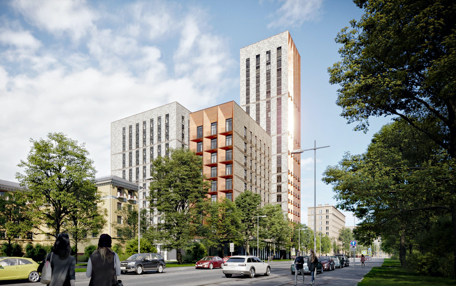 Для отделки фасадов дизайнеры выбрали медь, кирпич и цветовую палитру, которая гармонирует с архитектурой района. Три башни «Медного» будут выше остальных домов и позволят жителям наслаждаться панорамными видами на город.